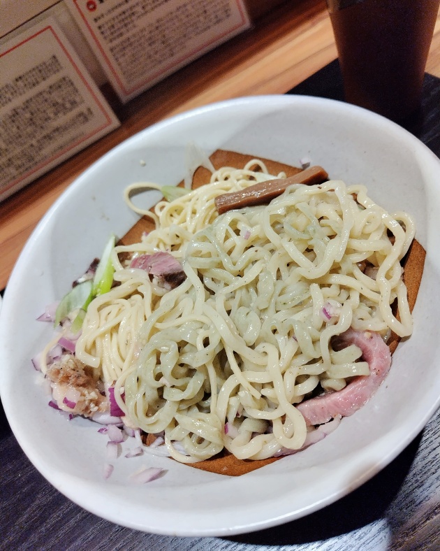 たまたま自由が丘に行く日に臨時の夜営業🥳三種の麺が衝撃的🤩でもやっぱり伊藤麺が好き😆塩分は強くなく、煮干が香るオイルとともに刻みニンニクが絡み、和牛のうま味も纏って風味豊か🤤岩中豚もウマウマで、ネギ属がアクセント😋