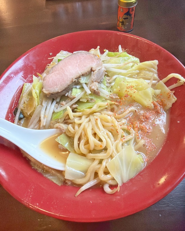 シャキシャキな炒めモヤシの香気が食欲を呼び覚ましますが、キャベツはクタッとしています✨とろりとしたマイルドな味噌スープとデロデロな自家製麺の太麺がかなり印象的で、うまい😋キャベツ多めで叉焼も入っていて890円は安いなと思いますが、値上げ予定とのことです🥳
