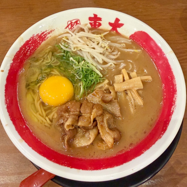 新幹線まであまり時間がないけどもう1杯食べたかったので突撃🚄京都と親和性がありそうな”茶系”徳島ラーメンの豚骨醤油スープに、無料の生卵をセルフでONして、甘辛な味付けの豚肉を絡ませるとウマウマ🥚麺量が控えめで、サクッと完食できたので良かった🥳うまい😋