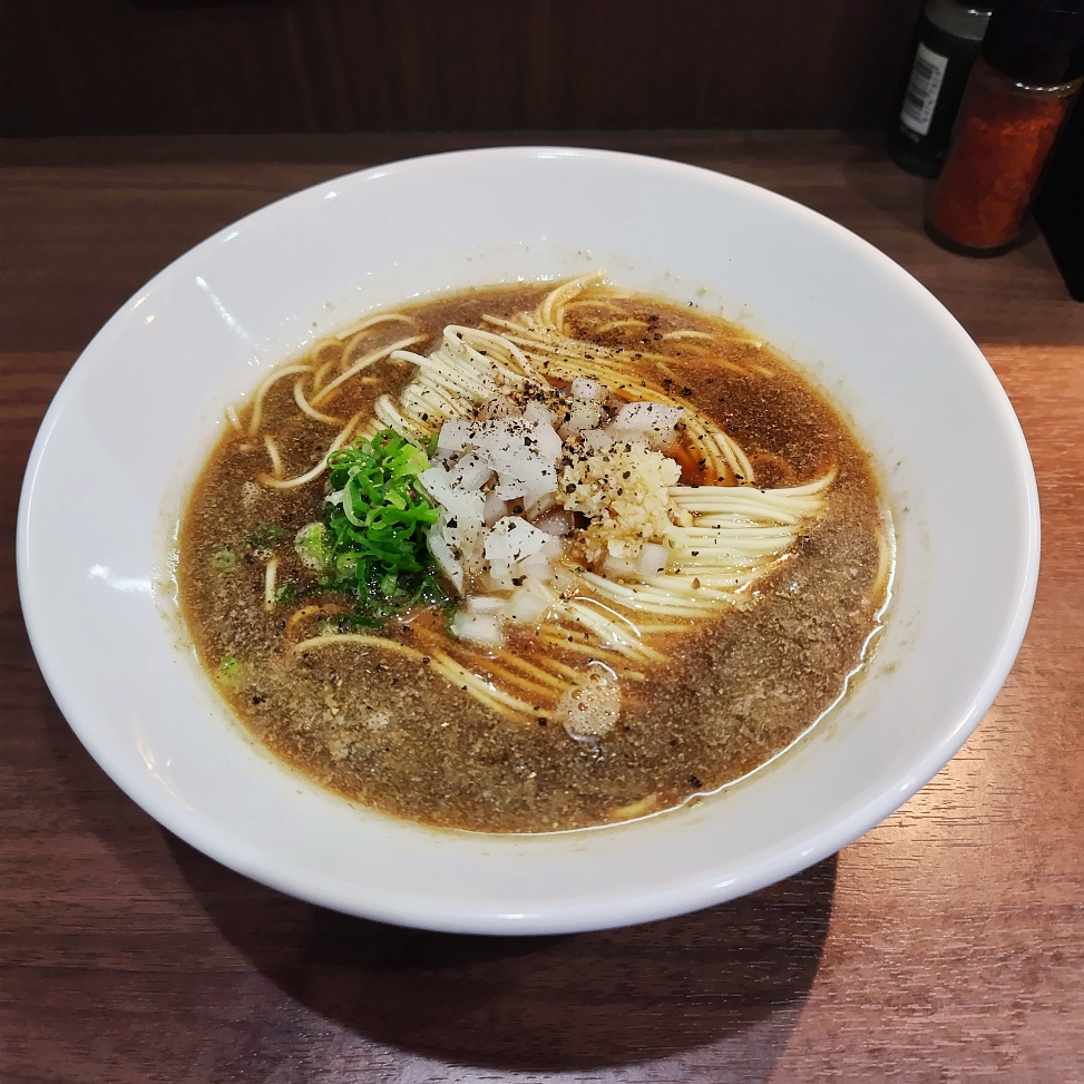 限定の夜営業🍜煮干のビターさの次に感じる良い香りに胡椒の香りが交わり、更にニンニクがプラスされて鼻が幸せ🤩バキッとした麺やたまり醤油のコクが美味すぎる😋ほかほかユッケごはんもおいしーすぎる‼️