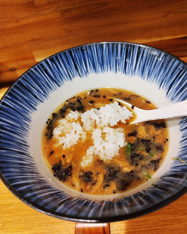 煮干の初速がハンパなく、昆布で追い打ち🫨コシのある麺をとろろや温玉に絡ませる度に目まぐるしく主役が変わり、大葉やミョウガが涼を演出🎐鴨肉も贅沢🦆追いめしも抜群の相性で、揚げタマネギも存在感を発揮🧅美味い、美味すぎる😋
