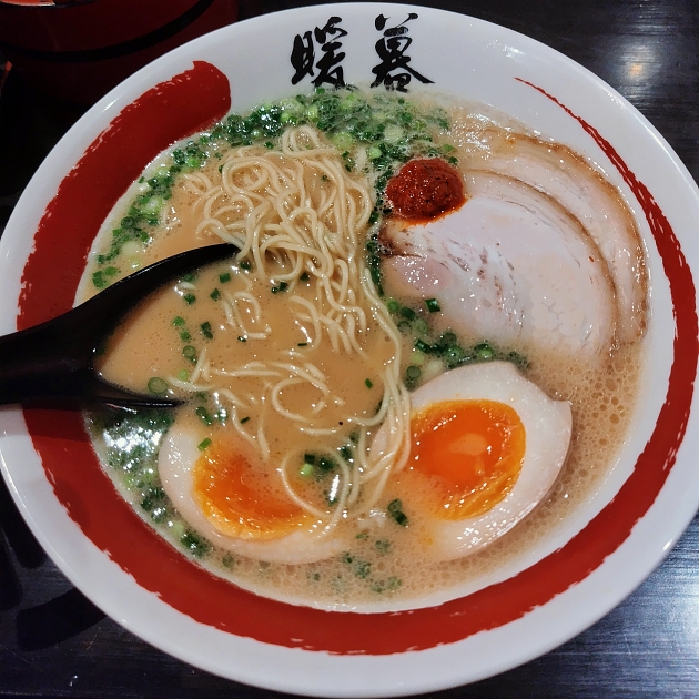 福岡ではたまに行っていた暖暮さんですが、関東では初訪🙈やっぱり一蘭系の豚骨スープですが、それ以外は結構違いますね🤔主張強めな辛味ダレの辛さが食欲を唆り、薄くて軽めなチャーシューや極細麺をあっという間にペロリ😋一蘭より安い🥳ウマウマ😋