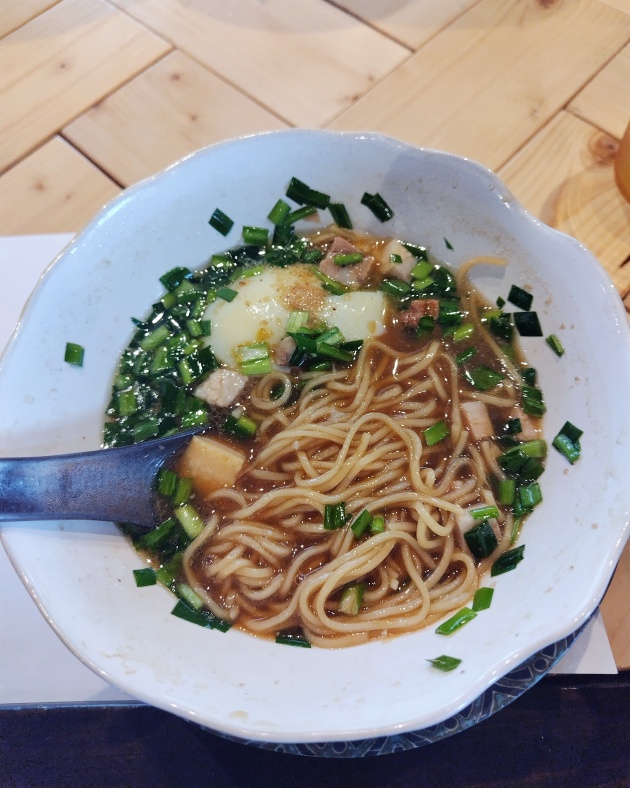 甘味・うま味が調和するスープは、細麺や卵に掛けられた調味料まで含めて一体化🍜それぞれ適度な細かさにカットされた韮、筍、叉焼が味だけでなく食感のフックとなり、どこを切り取っても新鮮でとてつもなく美味過ぎる👼