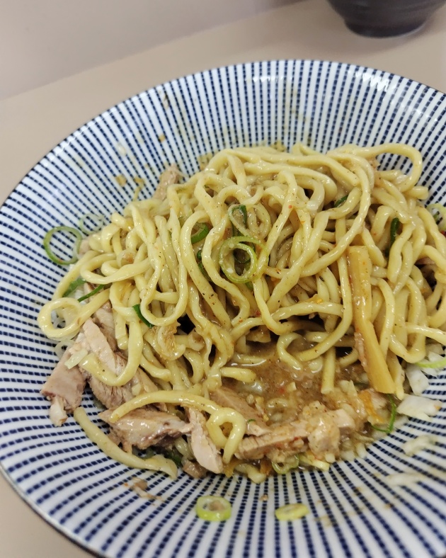 『中華そば』が休止中でたまに時間限定で解放されますが、本日は『まぜそば』とのこと💡硬めな麺のうねりが触感のアクセント🤩塩分などのパンチは控えめながら、中々の辛さ🌶食感強めなメンマ🥳魚介がじんわりで、安定の叉焼など素材の良さが感じられます🤤うまい😋