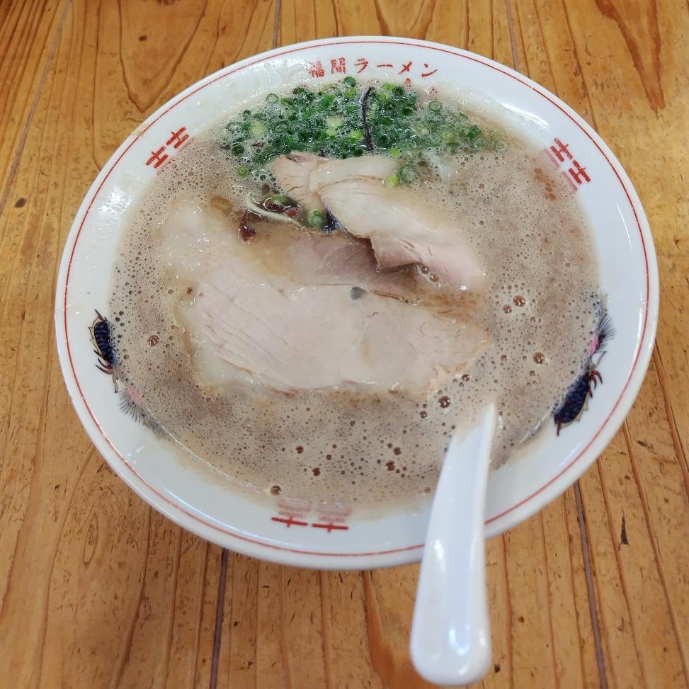 見た目どおりと言ってよいのか『三代目博多だるま』と似た味わいの熟成スープ🍜しょっぱくなく、骨粉がザリザリしないので、比較するならこちらのほうが綺麗めな印象🤤小気味の良いネギが食感のアクセント😉薄切りな大判叉焼🐖美味過ぎる🤭